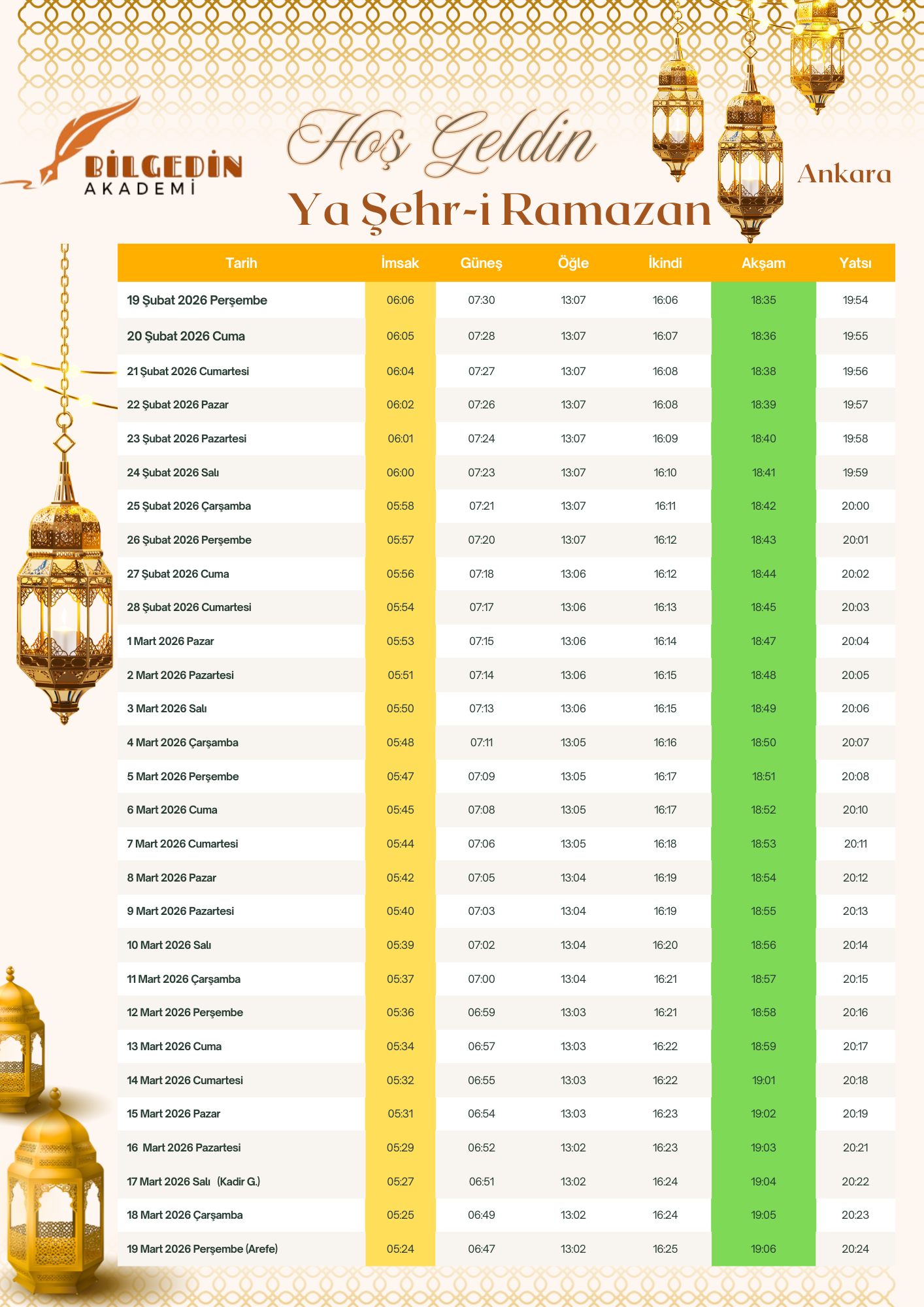 Ankara Ramazan İmsakiye 2025
